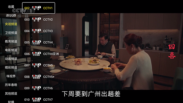 3、按菜单选项可以唤起电视频道列表。