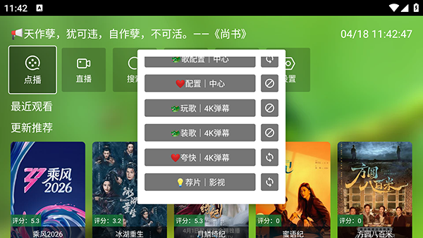 2、点击上面的点播选项,影视源已经失效,重新换一个点击确定。