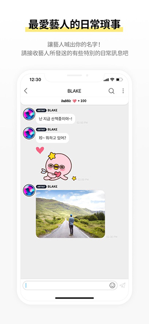 BH bubble ― BH Entertainment 官方粉丝互动平台。由 Dear U 与 BH Entertainment 联合推出,专为全球粉丝打造的沉浸式追星体验。在这里,你将第一时间收到来自偶像的独家日常语音、幕后花絮、行程预告与节日祝福,甚至可能被偶像亲口喊出你的名字!所有内容仅限 Bubble 订阅用户可见,确保每一次互动都真实、私密、专属。打开 App,即进入只属于你与偶像的亲密空间。