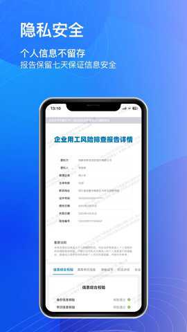 3、该专注于用工风险,致力于建立公平诚信的求职环境,为企业客户和求职者提供优质的用工风险排查服务和求职平台。