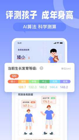 2、使用科学的生长发育数据分析算法,帮助用户优化运动方案,并预测个人的成长潜力。