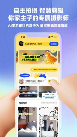 2、自主拍摄功能还可以满足铲屎官们的分享欲望,让你可以将宠物的每一个表情都炫耀给朋友们看。