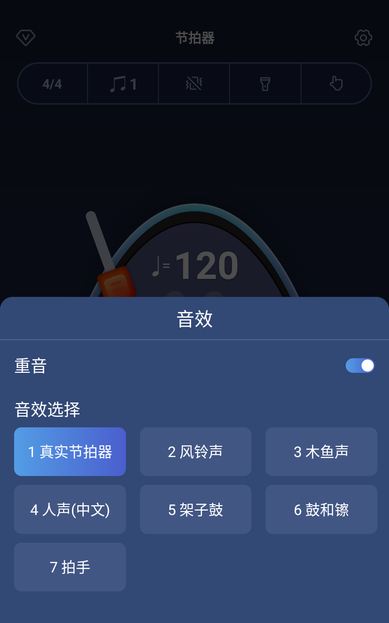 3、配备重音闪光模式,嘈杂环境下可开启,通过闪光灯强化视觉节拍提示。