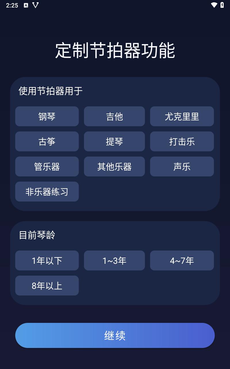 2、进入软件后,选择节拍器功能与对应身份。