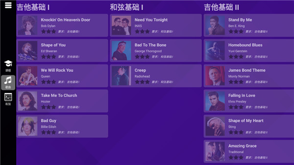 5、点击歌曲,内置海量的歌曲可以让用户用吉他进行弹奏。