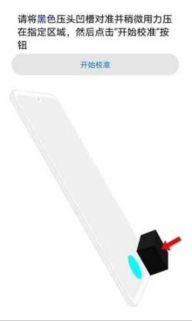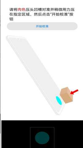 2、请将黑色压头凹槽对准并稍微用力压在指定区域,然后点击“开始校准”按钮