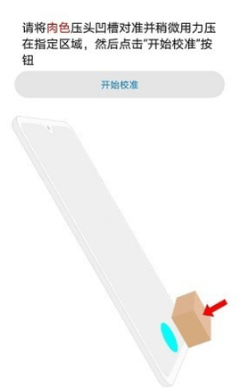 1、请将肉色压头凹槽对准并稍微用力压在指定区域,然后点击“开始校准”按钮