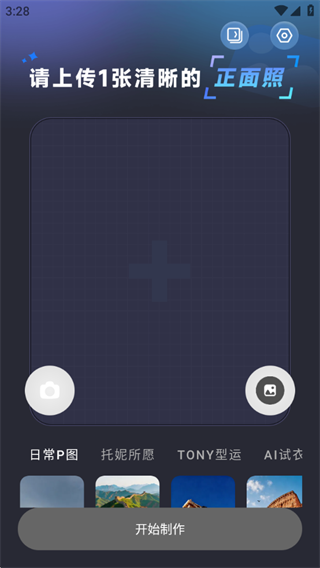 3、在主界面上传需要处理的照片,自由挑选喜欢的特效风格,确认选择后点击“开始制作”,即可完成修图生成。
