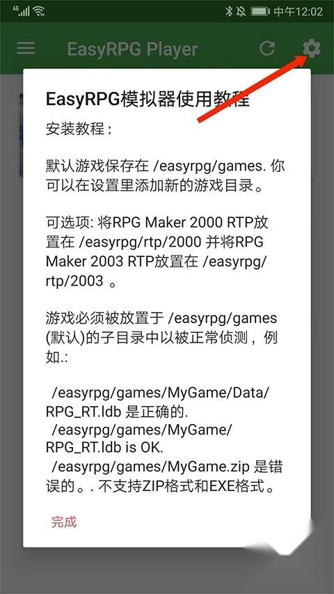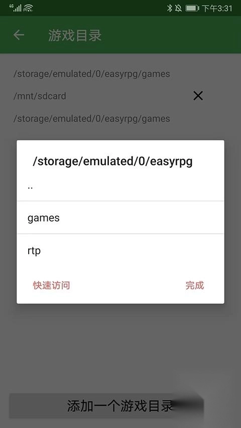 1. 打开EasyRPG模拟器后,默认的游戏存档路径为“/easyrpg/games”,您可以点击界面右上角的设置图标来添加游戏。