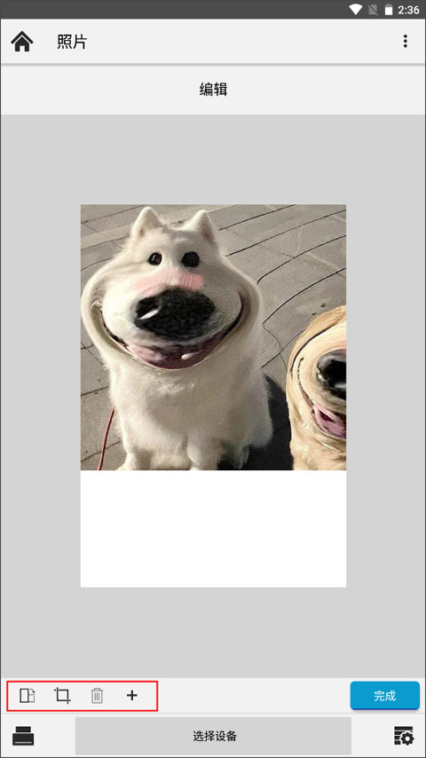 2借助编辑功能,您可对图片进行大小调整、横移、旋转和剪裁。您还可使用+按钮并从设备选择图像,将额外的图像添加至相同的“画布”,最多可添加7个额外图像。垃圾桶图标可让您删除所选的添加至画布的图像。在您完成编辑之后选择完成。
