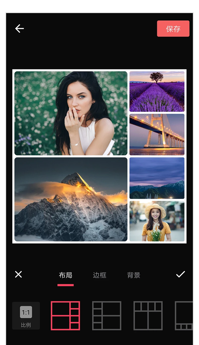 支持多张图片组合排版,拓宽照片内容的表达形式。