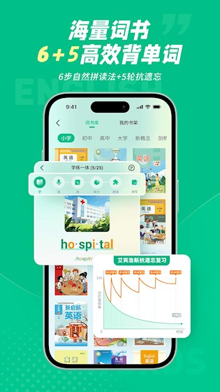 2、 记忆方法科学:运用六步自然拼读逻辑,将字母组合规律融入记忆过程,降低背诵难度,提升记忆效率。
