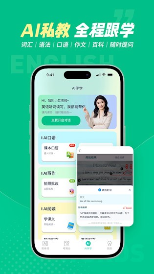 2、 听说读写练:提供全方位的语言训练模块,从听力输入到口语输出,再到阅读理解和写作练习,形成完整学习链条。
