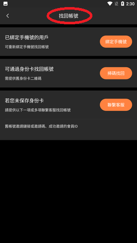 2、按照下列步骤找回账号即可。