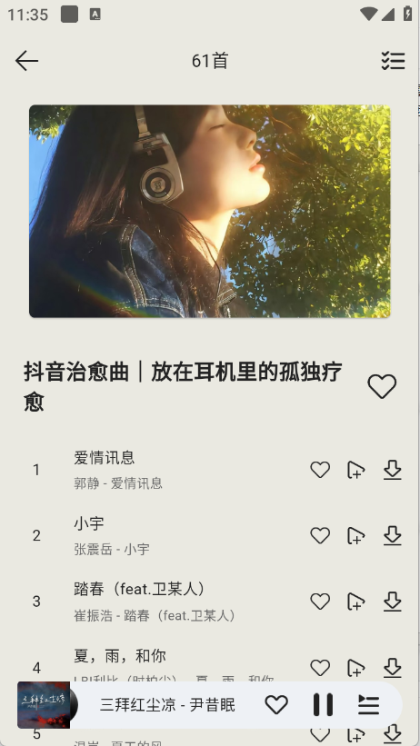 2、可将喜爱的音乐下载至本地保存,无网络环境下也能正常播放,随时随地畅享音乐。