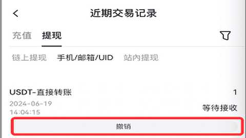 收款者可以在提现界面点击右上方的“笔记本”图标,进入“近期交易记录”→“充值”→“手机/邮箱/UID”中查看转账详情,选择“接收”或“拒绝”操作。如果收款者拒绝接收,冻结的资金将退回给发送者。
