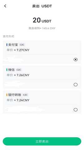 点击“卖出USDT”,选择您的收款方式,在页面上显示如下详情。