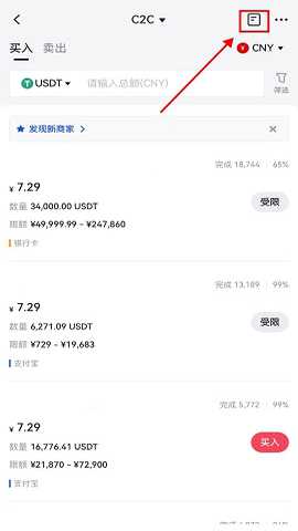 订单匹配后,您可以点击页面上方的“快捷交易”切换到“C2C”界面,进入订单页面查看订单的详情。