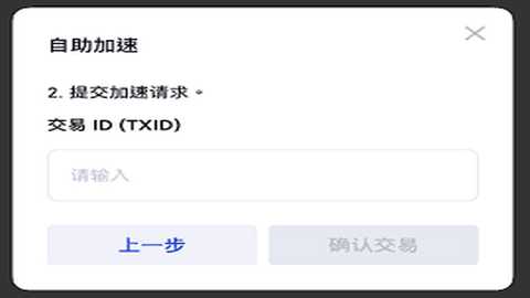 在弹出窗口中输入该笔充值的交易ID(TxID),然后点击“确定”,提交后耐心等待即可加速充值。