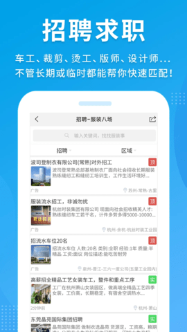 2、在招聘方面,服装八场能够轻松帮助商家招到各种服装工人和服装师傅,包括车工、样衣工、裁剪和版师等各种岗位。