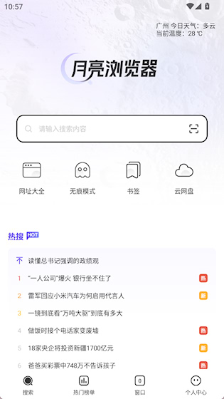 月亮浏览器是一款高效上网工具,集网页浏览、资源搜索与内容娱乐于一体,内置强力广告拦截功能,有效过滤各类弹窗干扰,浏览过程流畅丝滑,通过聚合多个主流搜索引擎,快速精准定位所需信息,,是移动端不可或缺的实用助手。