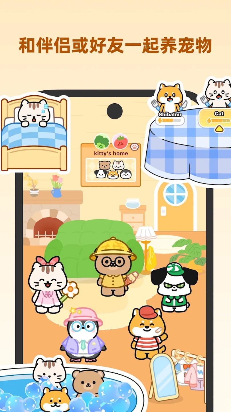2、 虚拟宠物:创建专属电子宠物,两人共同喂食照顾,随互动增加而不断进化成长形态。