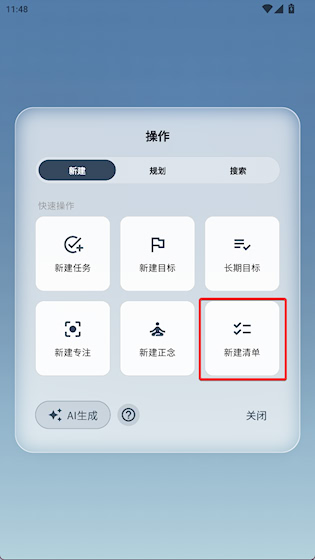 2、选择“新建清单”