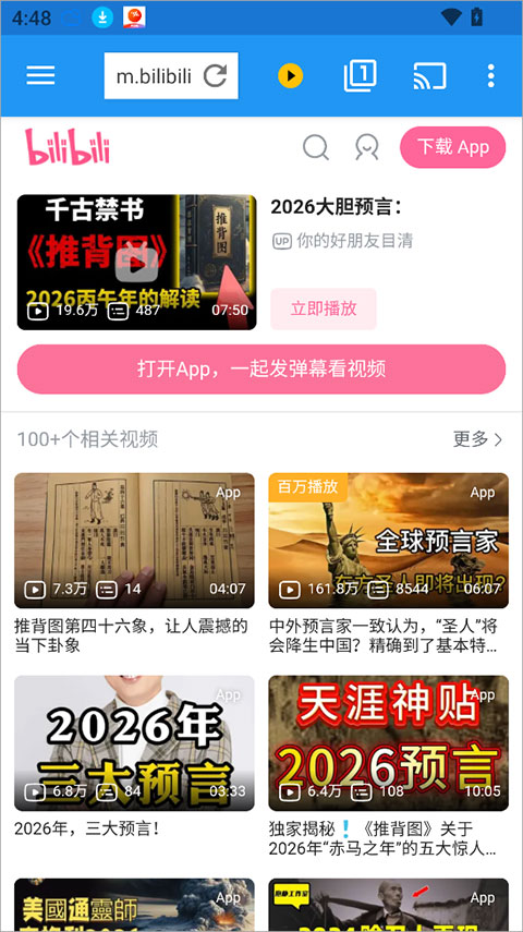 在App自带的地址栏输入视频网站链接。播放视频时,App会自动弹出发现的视频资源列表,通常会列出分辨率和文件大小。