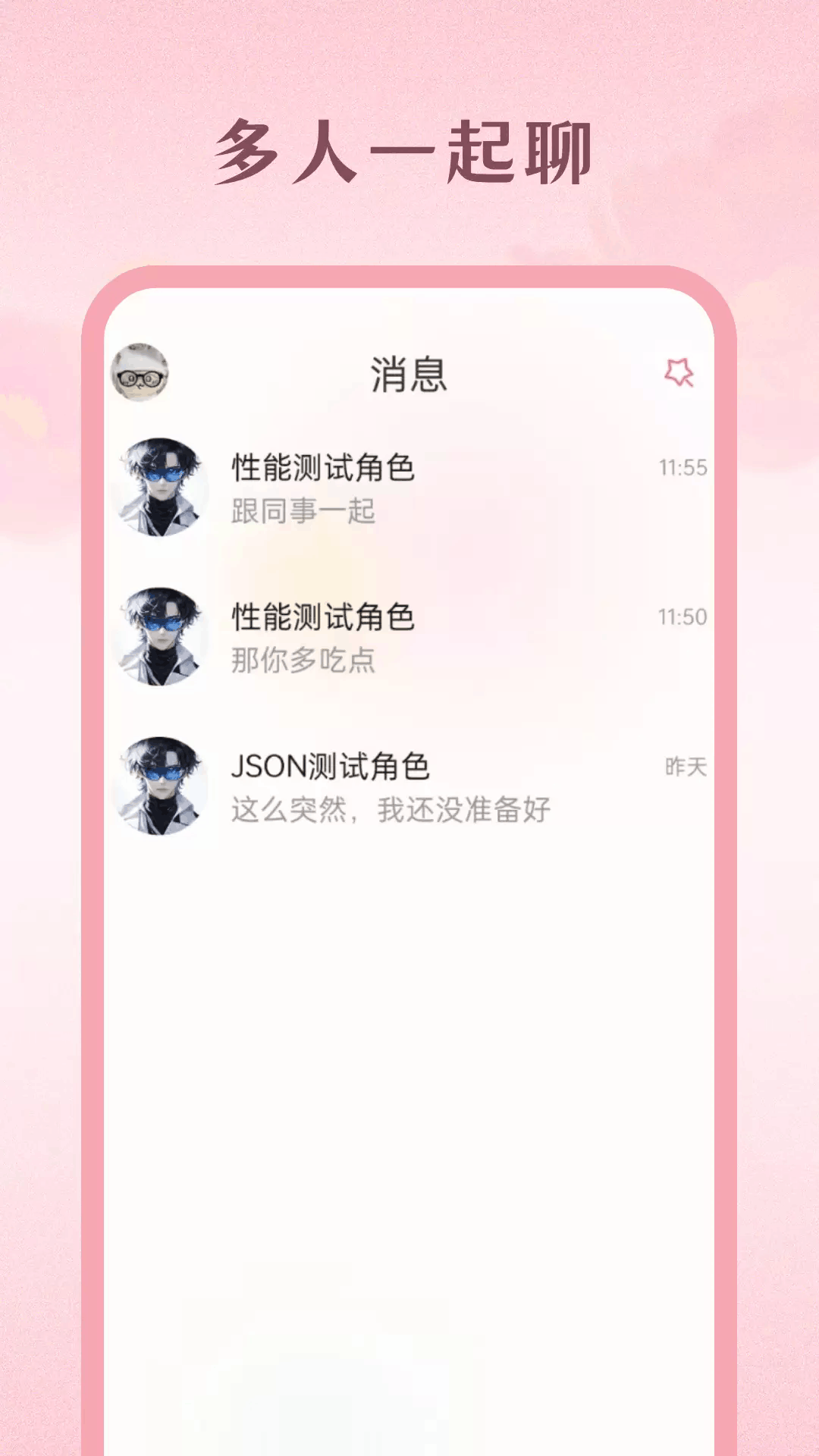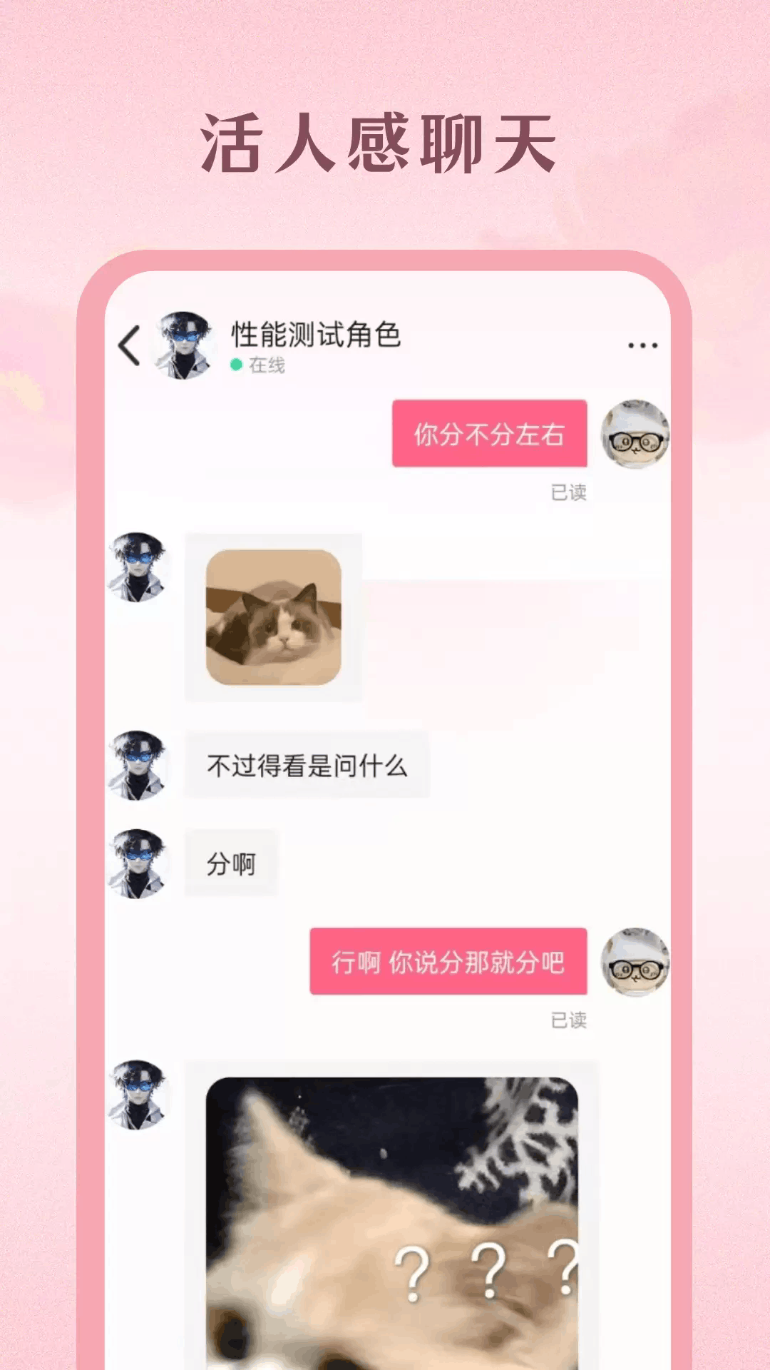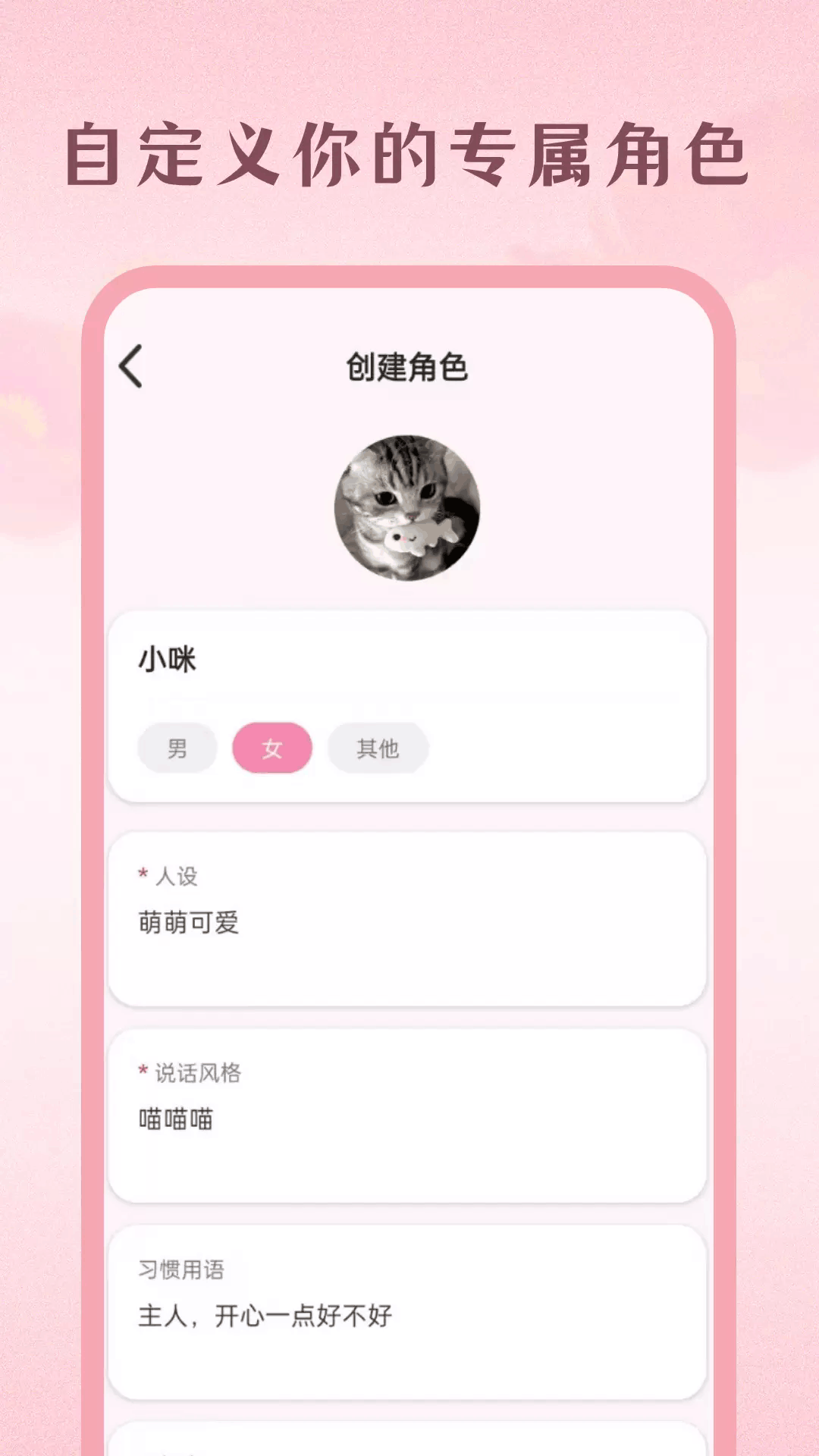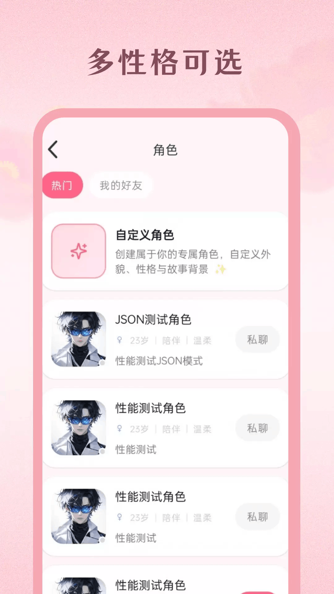 自定义兴趣角色,围绕影视、二次元、追星等话题深度互动。