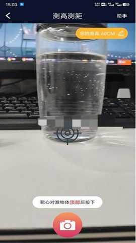 3、将镜头对准测量物体所在的最底部,缓缓移动手机,对准底部按下确定。