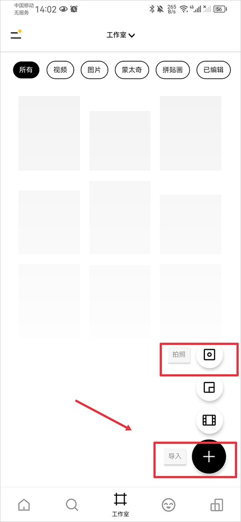 1、在保存滤镜配方前,先调出一个滤镜模板。在工作室界面选择导入一张图片,或点击相机功能拍摄一张照片。