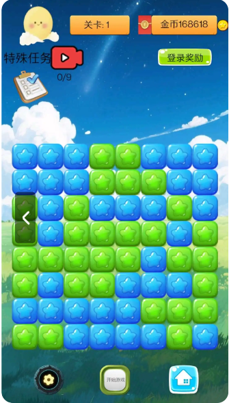1、考验你的眼力劲,看是否能够快速的找到相邻的相同星星进行连线;