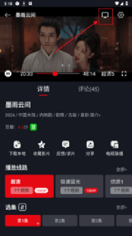 7、投屏仅支持当前选择的剧集播放,播放结束后,其它剧集播放需要再次投屏