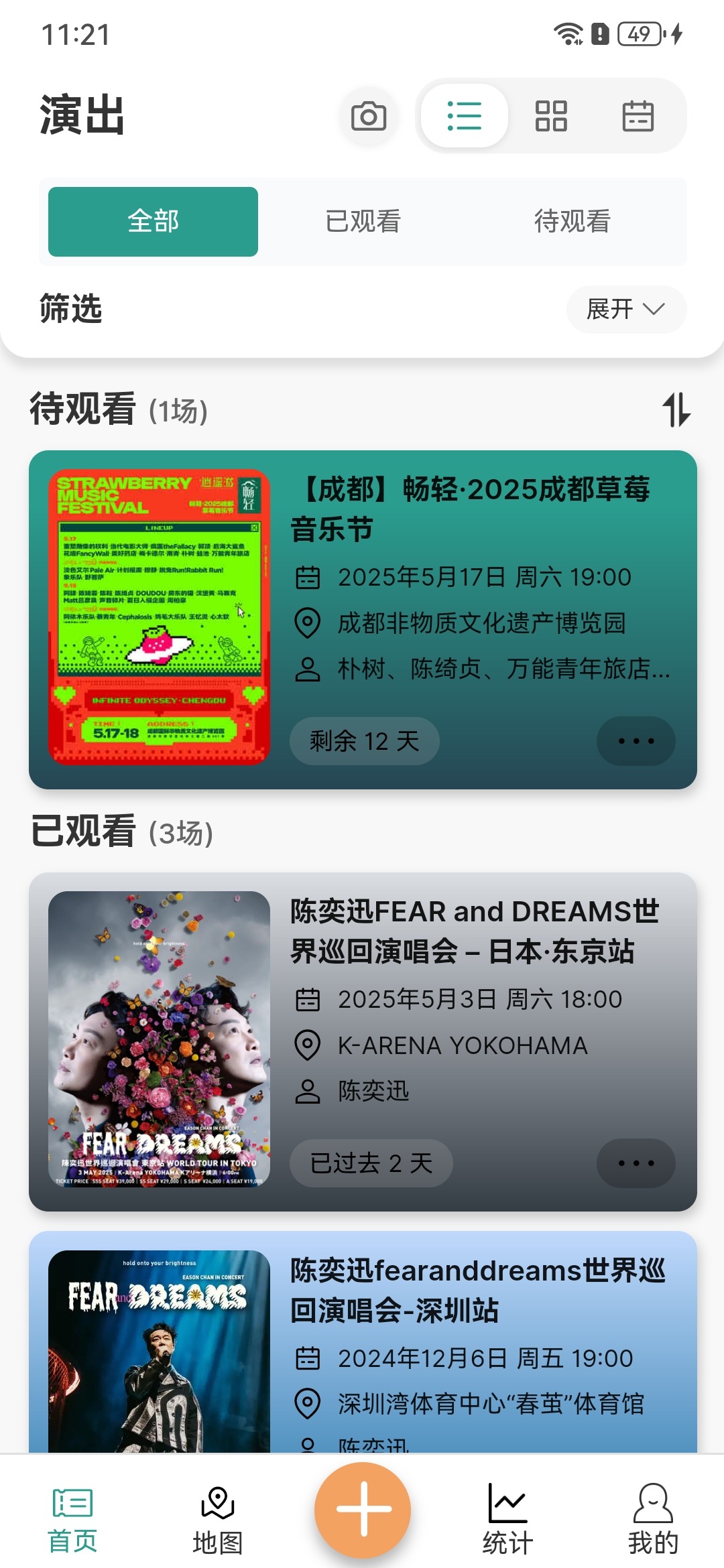在地图视图中解锁你的「演出旅行地图」,直观查看去过的城市、打卡的场馆、累计演出次数,让每一次奔赴都成为人生版图上的闪耀坐标。