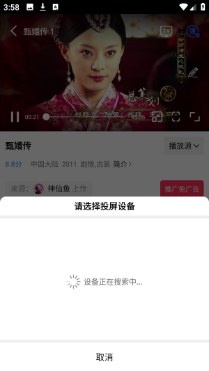 3、再次点击右上角的TV等待设备搜索连接完成即可。