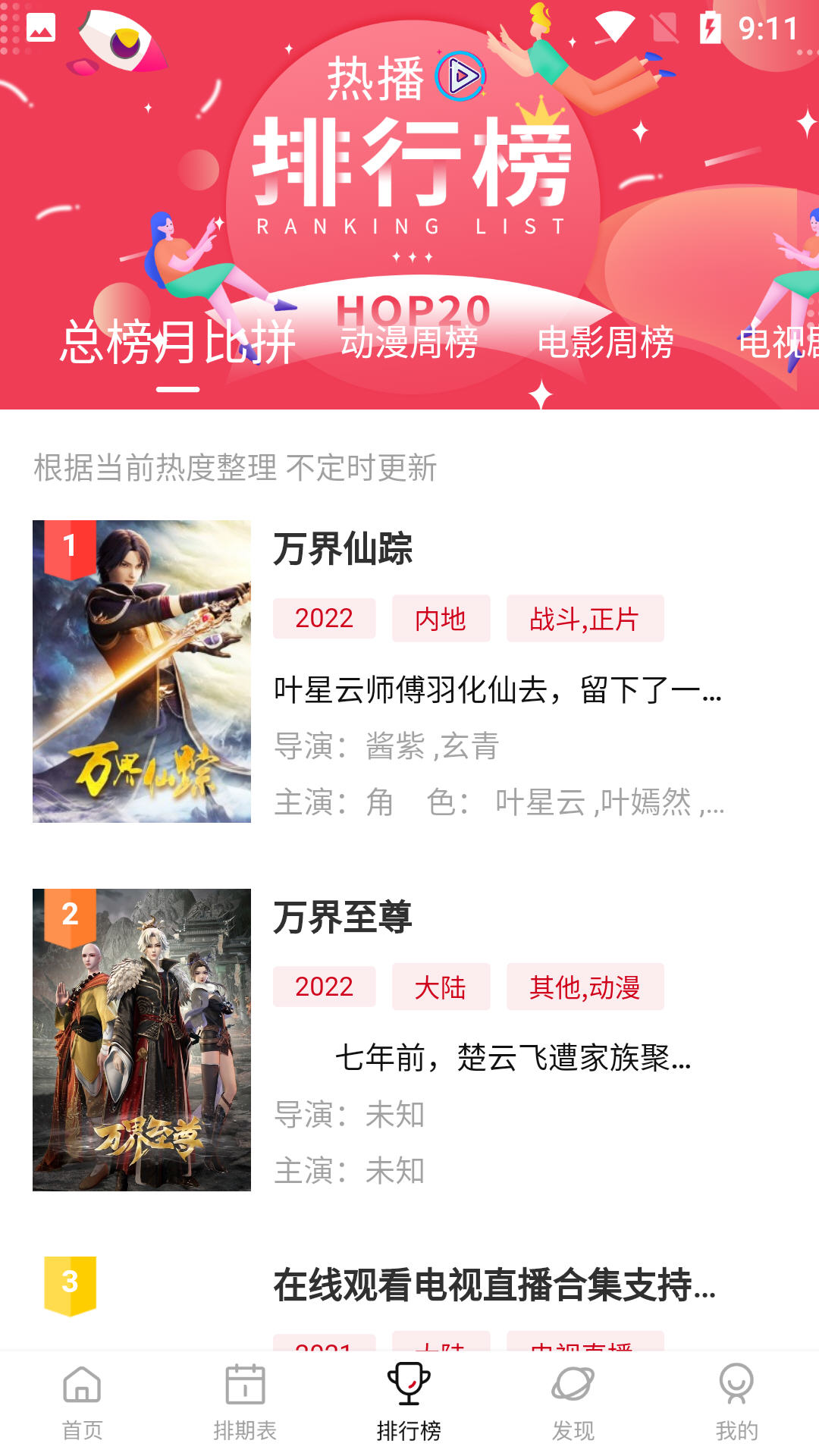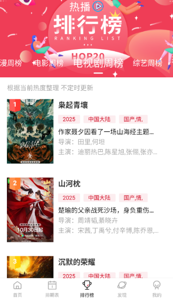 2、也可以点击排行榜查看近期热门电视剧、电影、综艺