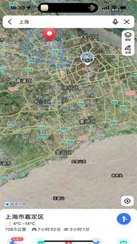 4、待切换成功后,在地图中点击想要查看街景的地点,小编以【嘉定区】为例