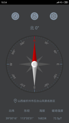 户外指南针app,优质实用工具系列应用之一。秉承一贯的简单易用,不含插件,没有广告,是你户外出行的好帮手。适配320480及以上的分辩率,硬件要求具有方向传感器。包含指南针功能;指南针真北、磁北切换;当前经纬度信息(度分秒制);当前地址位置。