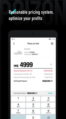 POIZON卖家平均2.5天内就能完成第一笔交易,甚至更快!省去繁琐的卖家注册流程,一键出价即可开启出售模式,热门单品能在短时间内被快速抢购。所有交易均可通过移动设备完成,流畅便捷的出售体验,成为潮流单品卖家的首选平台!