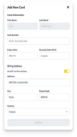 3.输入银行卡信息并点击【确认】。请注意,仅可使用本人注册的信用卡或借记卡。