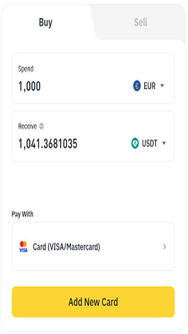 2.下一步,选择要支付的法币类型和希望购买的币种。点击【添加新卡】按钮,继续添加银行卡信息。