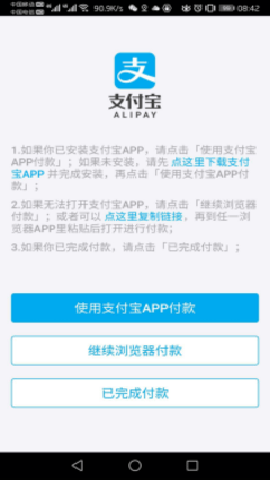 4、点击下一步进入付款界面,目前只能使用支付宝进行支付。