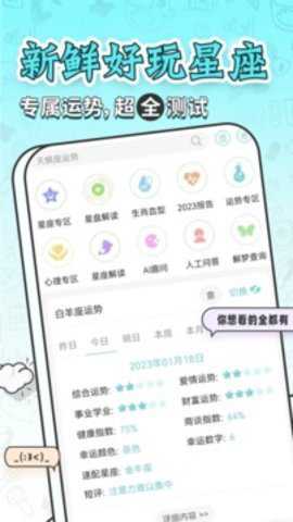 2. 它能帮助用户了解自己的星座特点,以及掌握每日、每周、每月和全年的运势变化。