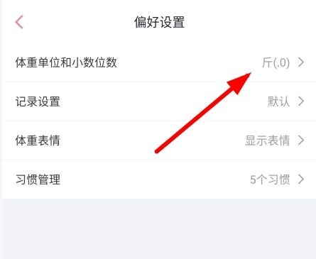 3、选中页面首位的体重单位与小数位数,即可切换公斤、斤两种单位。