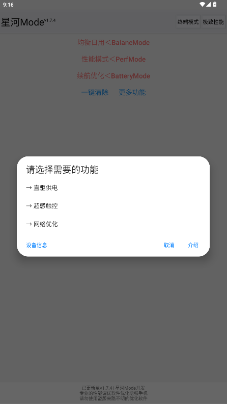 星河mode官方下载最新版是一款专注于手机性能优化的工具类应用,旨在为用户提供便捷、高效的手机性能提升方案,让老旧设备重焕活力,新设备运行更流畅。