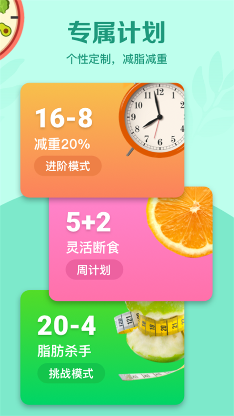 适合各类人群!APP内置多种断食方案,无论有无经验,都会根据实际情况分析适配计划,引导完成坚持,通常一周内可看到身体变化,无需节食,事半功倍。