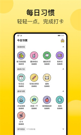 1、每日打卡:操作简单,轻轻一点就能完成每日习惯打卡,无需复杂步骤。