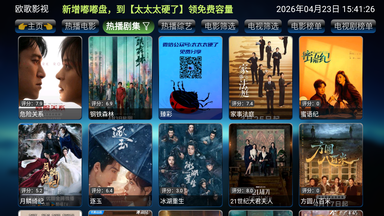 欧歌影视魔改版2026最新版是一款免费无广告的影视追剧软件,软件聚合了海量的电影、电视剧、综艺和动漫影视资源,还可以自由观看各种电视直播内容,通过强大的搜索供可以快速找到想要的影视内容,支持切换多种视频源的高清播放,让用户们可以享受更清晰流畅的观影体验!