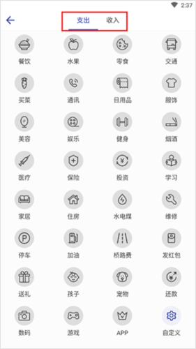 2、这里可以选择支出或者收入;