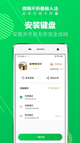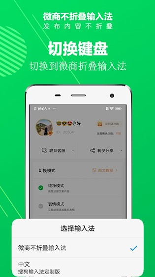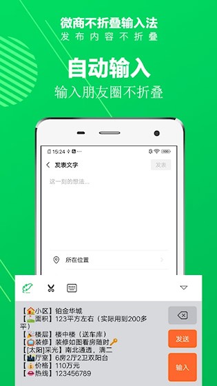 不折叠输入法是一款实用输入工具,解决微信朋友圈长文本被自动折叠问题,可发布完整长文案而不触发平台折叠机制,支持拼音、手写、语音等多种输入模式,内置海量表情包与符号库,操作界面简洁无广告干扰,满足微商营销、日常分享等场景需求。